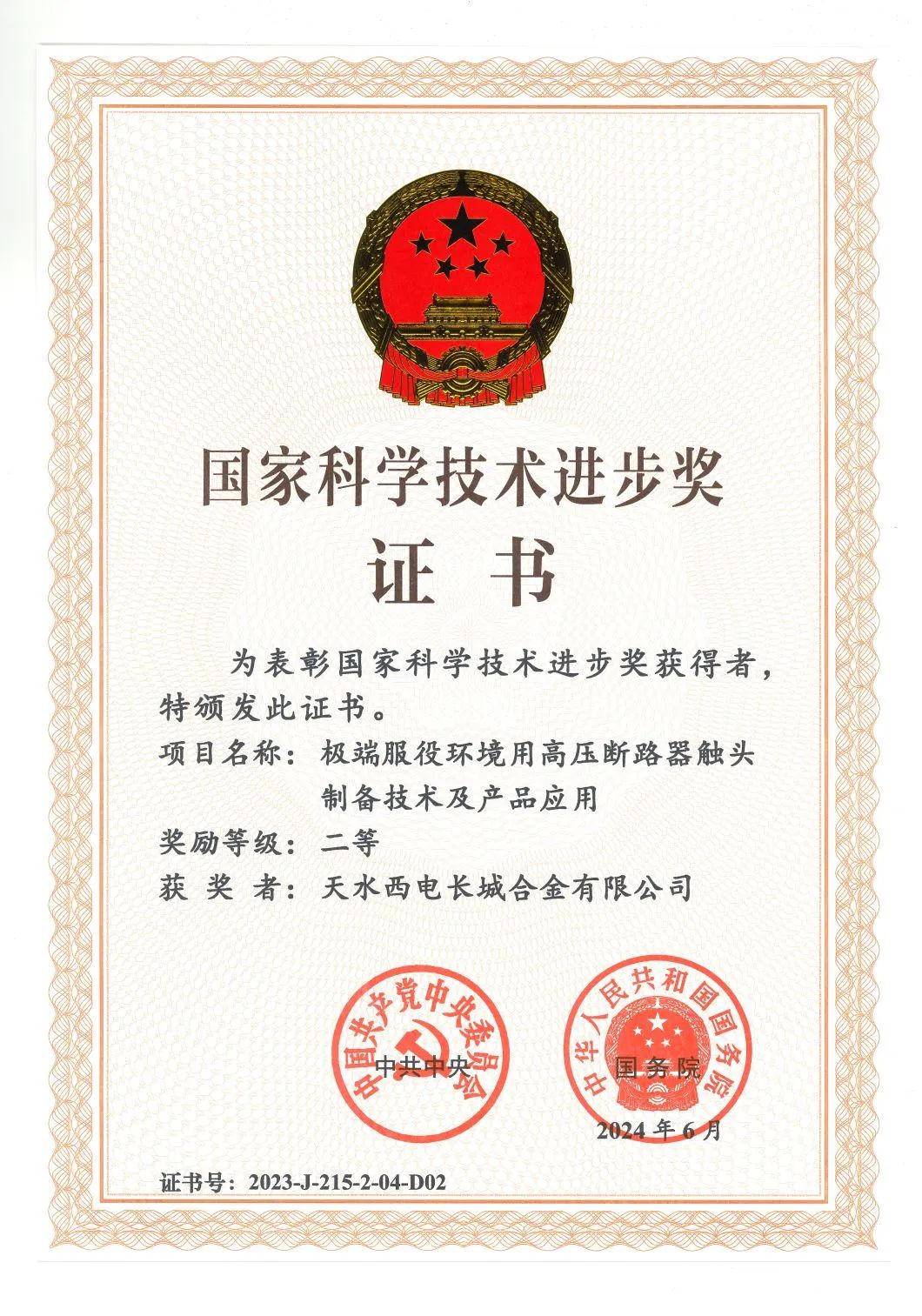 天水合金1項成果榮獲國家科學(xué)技術(shù)進步獎二等獎
